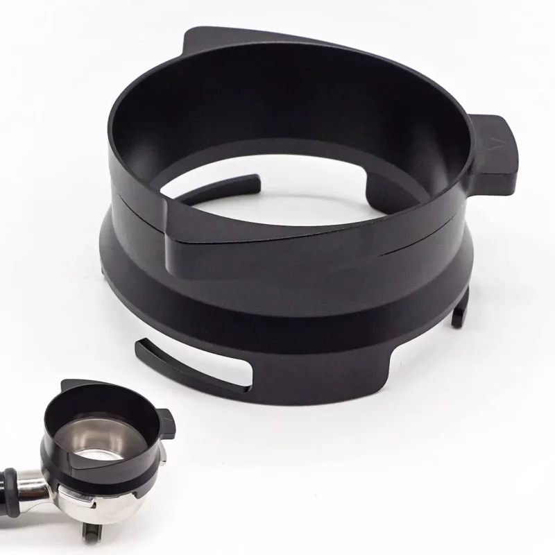 Deze zwarte doseerring, compatibel met Sage, Solis en Breville espressomachines, is ontworpen om het doseren van koffie te vergemakkelijken en morsen te voorkomen. Met zijn nauwkeurige pasvorm doseert het moeiteloos de perfecte hoeveelheid koffie voor elke espresso, terwijl het slimme ontwerp morsen minimaliseert. De toevoeging van een handige anti-morsrand zorgt voor een schonere en efficiëntere koffiebereiding, terwijl de elegante zwarte afwerking een vleugje stijl toevoegt aan uw koffie-ervaring. Optimaliseer uw barista-vaardigheden met deze doseerring voor een zorgeloze en perfecte extractie van koffie.