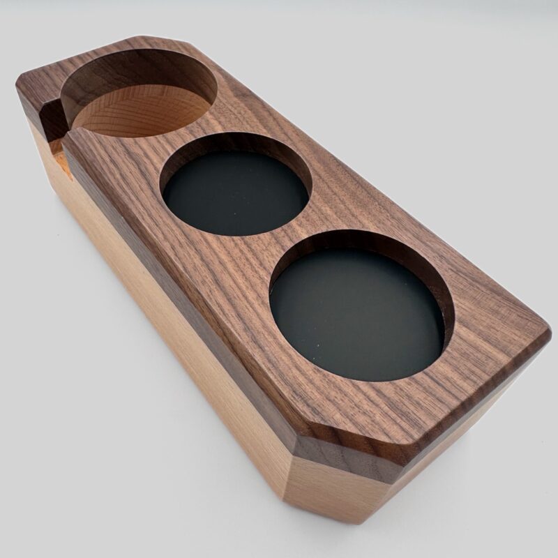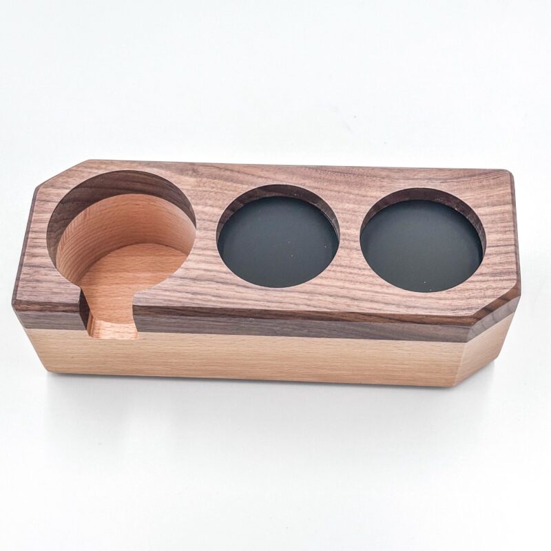 Dit houten tamper station van 58mm is een essentiële toevoeging aan de uitrusting van elke koffiekenner. Vervaardigd met precisie en gemaakt van hoogwaardig hout, biedt dit station een stijlvolle en handige plek om je tamper te bewaren en te gebruiken. Met een perfecte pasvorm voor tampermaten van 58 mm zorgt dit station voor een moeiteloze koffievoorbereiding. Voeg een vleugje natuurlijke schoonheid en doordachte functionaliteit toe aan je barista-ritueel met dit houten tamper station van 58mm.