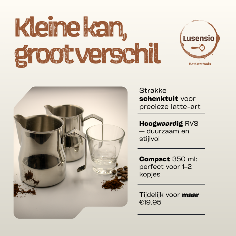 Compact, stijlvol en heerlijk praktisch. Of je nu barista bent of gewoon indruk wilt maken op je visite — dit kannetje doet het werk met flair!